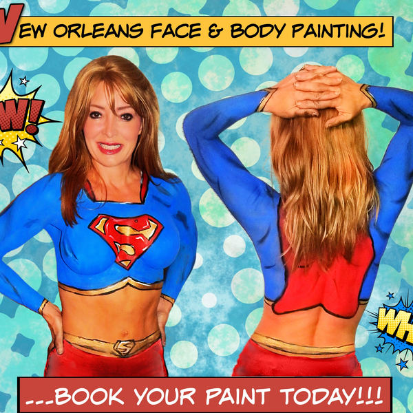 Do you want the best costume at the party?! Do you want to blow the others away?! Then this package is for you! Perfect for Halloween, Mardi Gras, Comic Con, or your next costume party! New Orleans Face & Body Painting will paint you from head to toe, back and front, in the design of your choice! All you need to do is decided what you want to be!