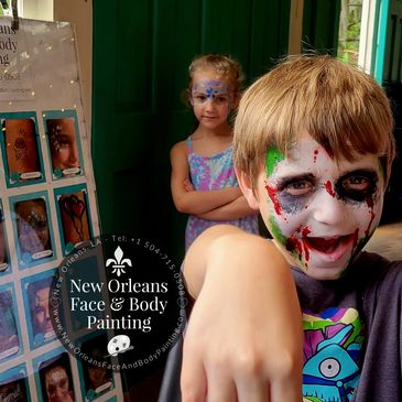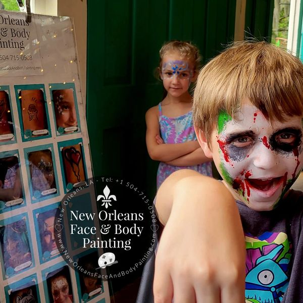 Please note that due to high demand we are not able to paint at party locations on the Northshore or past LaPlace on Halloween weekend, we are sorry for an inconvenience.